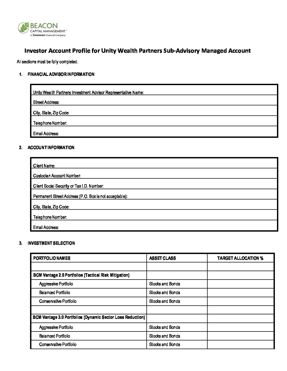 Unity Wealth Partners – Investor Account Profile